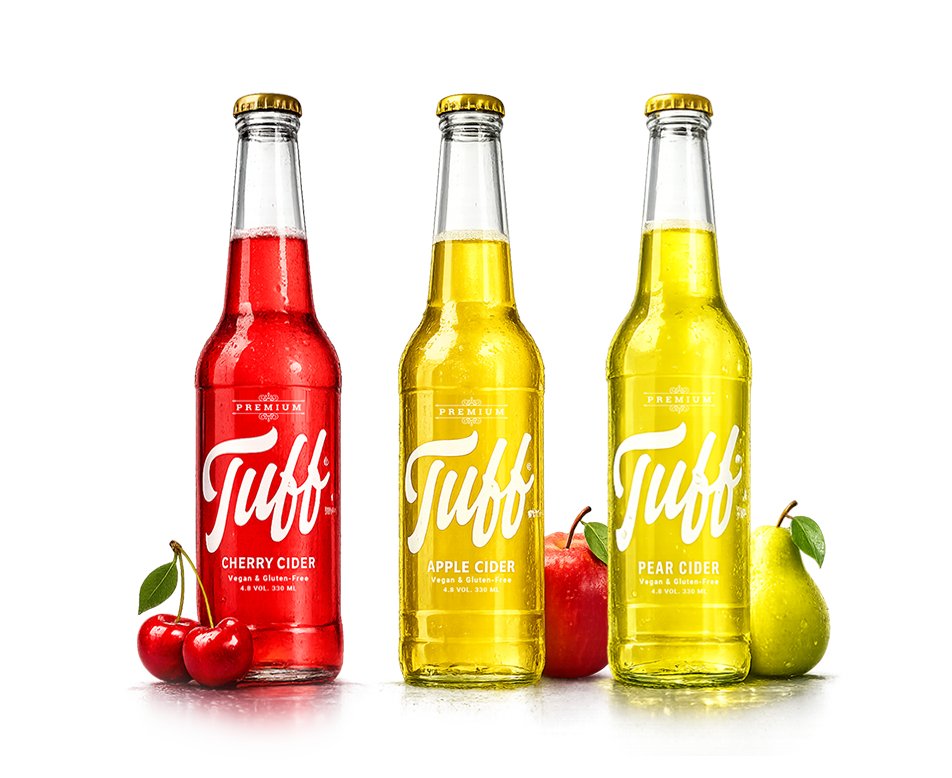 Each Tuff Cider® is bottled by hand, filtered and contains at least two apples inside. Tuff® apple & pear cider is made literally from apples, pears, mountain water and carbon dioxide. Nothing else.